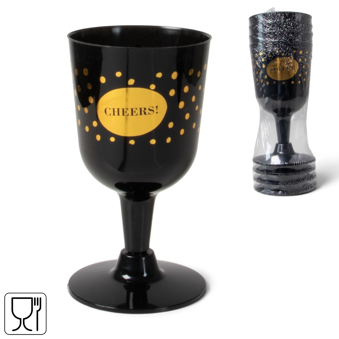 Met deze stijlvolle Senza wijnglazen wordt elk drankje een feest! De glazen hebben een inhoud van 140 ml en zijn uitgevoerd in elegant zwart met goudkleurige accenten, inclusief de tekst "Cheers!". Ze zijn eenvoudig in elkaar te zetten en na gebruik met de hand af te wassen voor hergebruik. Het demontabele ontwerp maakt de glazen gemakkelijk stapelbaar en handig op te bergen. Perfect voor feestelijke gelegenheden of themafeesten.