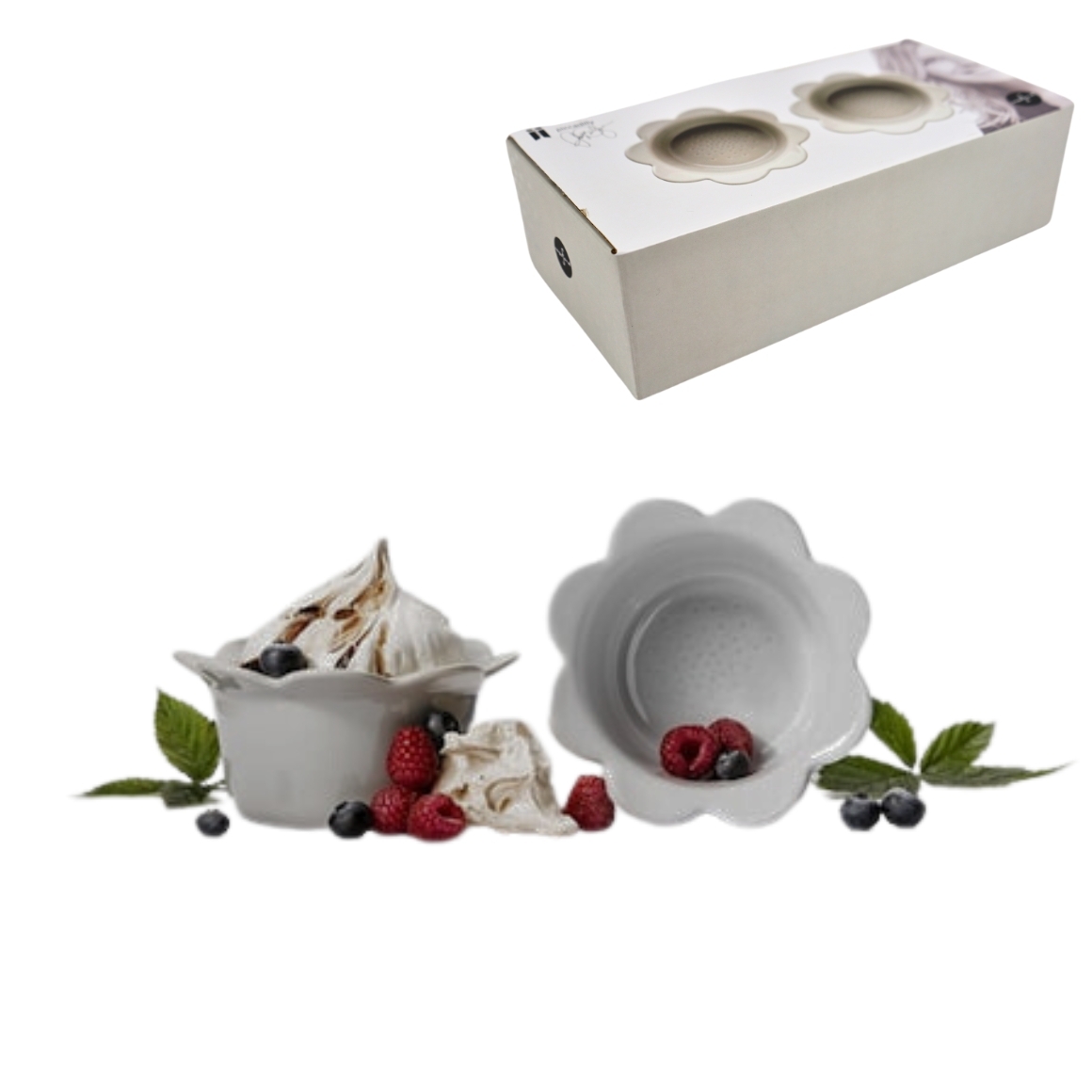 Deze grijs bloemvormige schaaltjes uit de Piccadilly-serie van Sagaform zijn perfect voor zowel bakken als serveren. Gemaakt van keramiek, hebben de schaaltjes een diameter van 13 cm en een hoogte van 6 cm. Ze zijn geschikt voor gebruik in de oven en kunnen na gebruik eenvoudig in de vaatwasser worden gereinigd. Deze set bevat twee kleine bloemvormige schaaltjes, ideaal voor individuele porties of het presenteren van bijgerechten.
