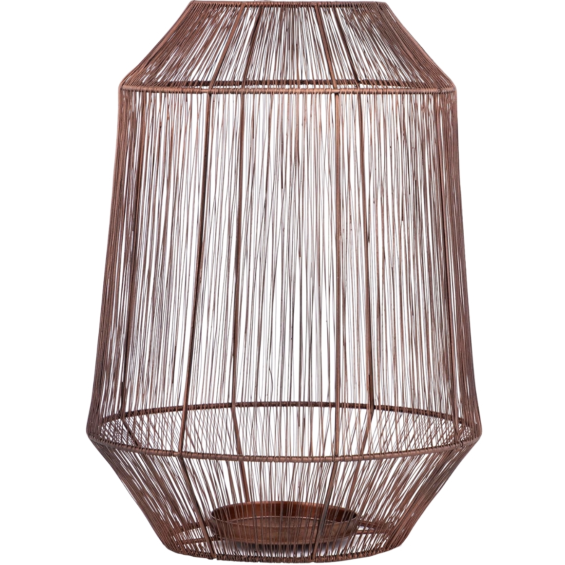 Windlicht van het merk PTMD uit de serie Justy. Het windlicht is gemaakt van ijzerdraden in een koperkleur. Het plateau van het windlicht heeft een diameter van 10 cm.