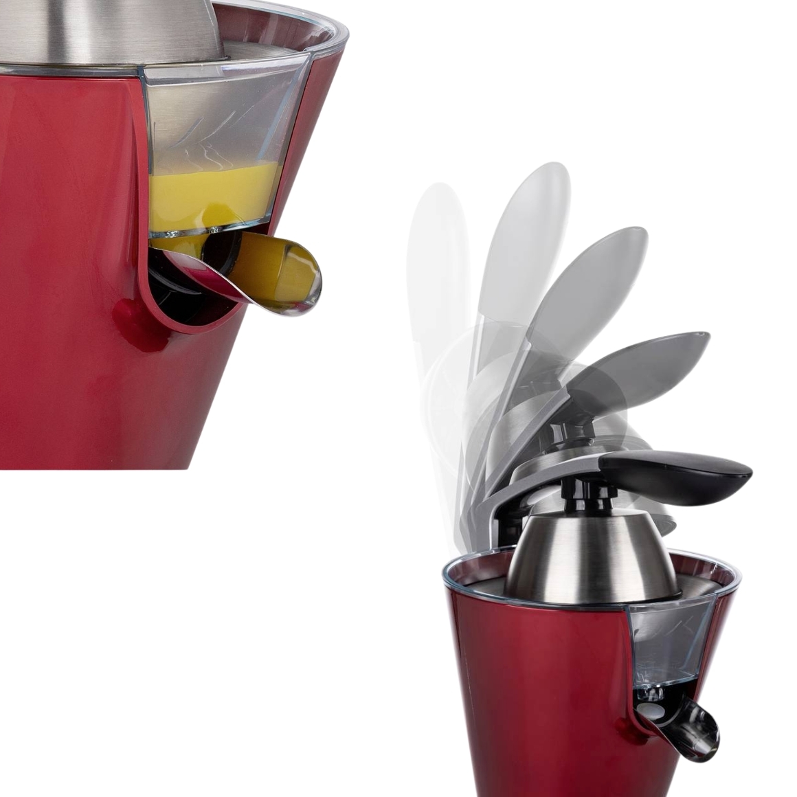 Deze Princess citruspers in rood metallic is een krachtige en stijlvolle aanvulling op je keuken. Met 300W vermogen pers je moeiteloos verse sappen, terwijl de twee perskegels en het RVS pulpfilter zorgen voor optimaal resultaat. De onderdelen zijn vaatwasmachinebestendig en de antislipvoetjes bieden extra stabiliteit. Dankzij de geluidsarme werking is deze citruspers praktisch en gebruiksvriendelijk.