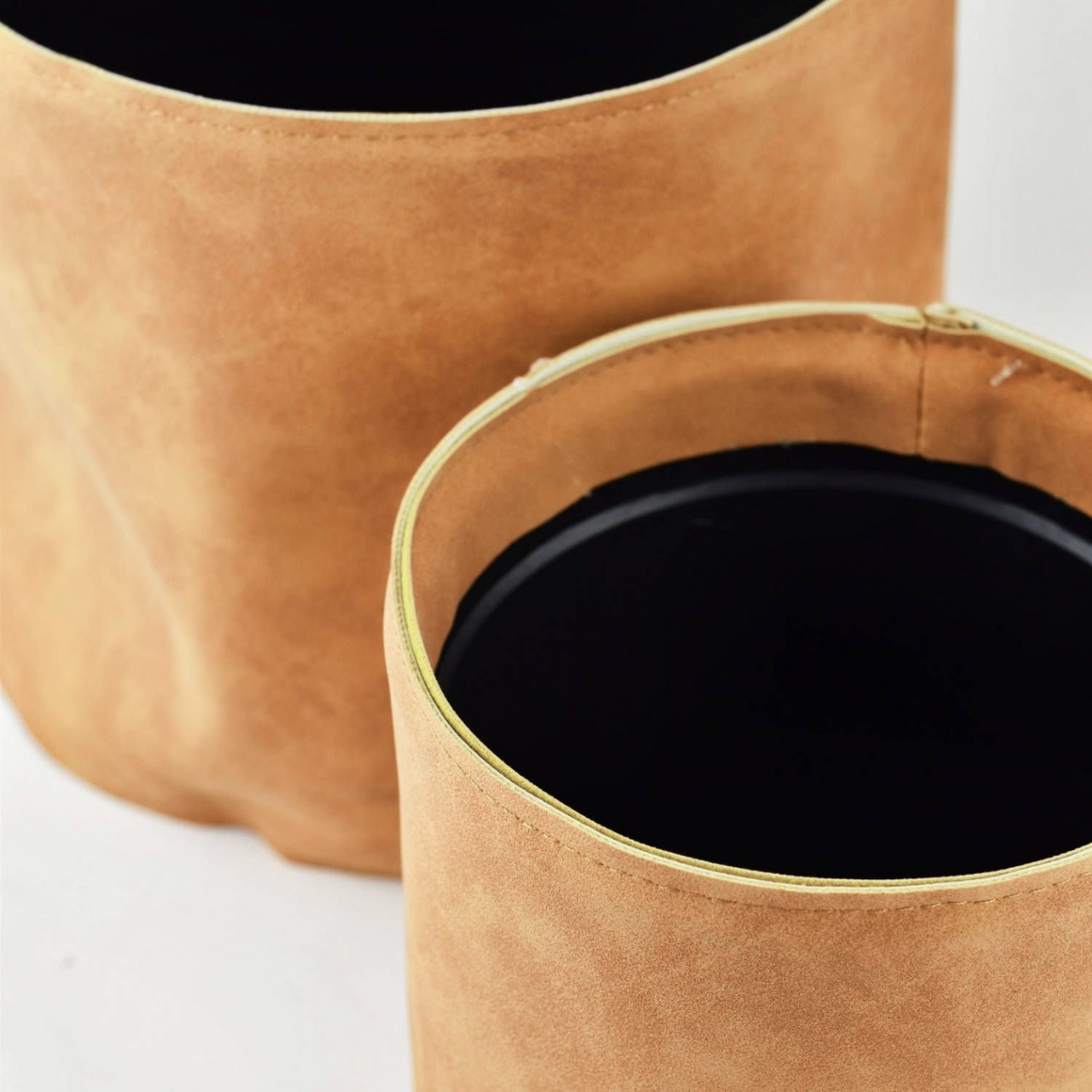 Bloempot lederlook cognac bruin 21,5 cm set van 2