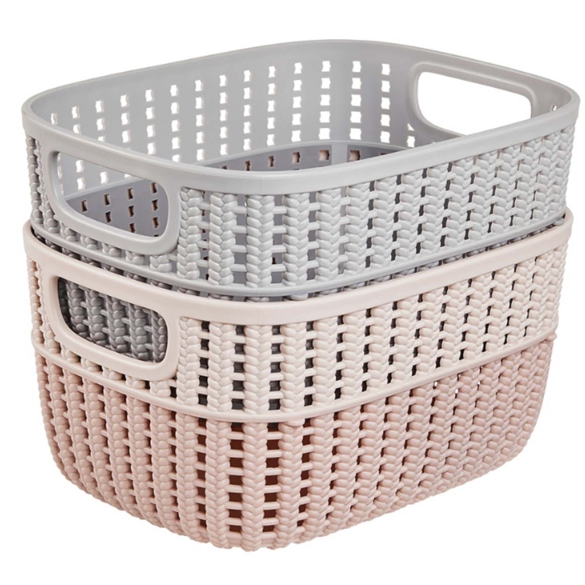 Stijlvolle en praktische wasmand met vlechtstructuur in zachte roze kleur. De mand heeft een inhoud van 15 liter en is ideaal voor het verzamelen van wasgoed of het opbergen van huishoudelijke items. Dankzij de geïntegreerde handgrepen is de mand gemakkelijk te tillen en te verplaatsen. Gemaakt van stevig kunststof, geschikt voor dagelijks gebruik.