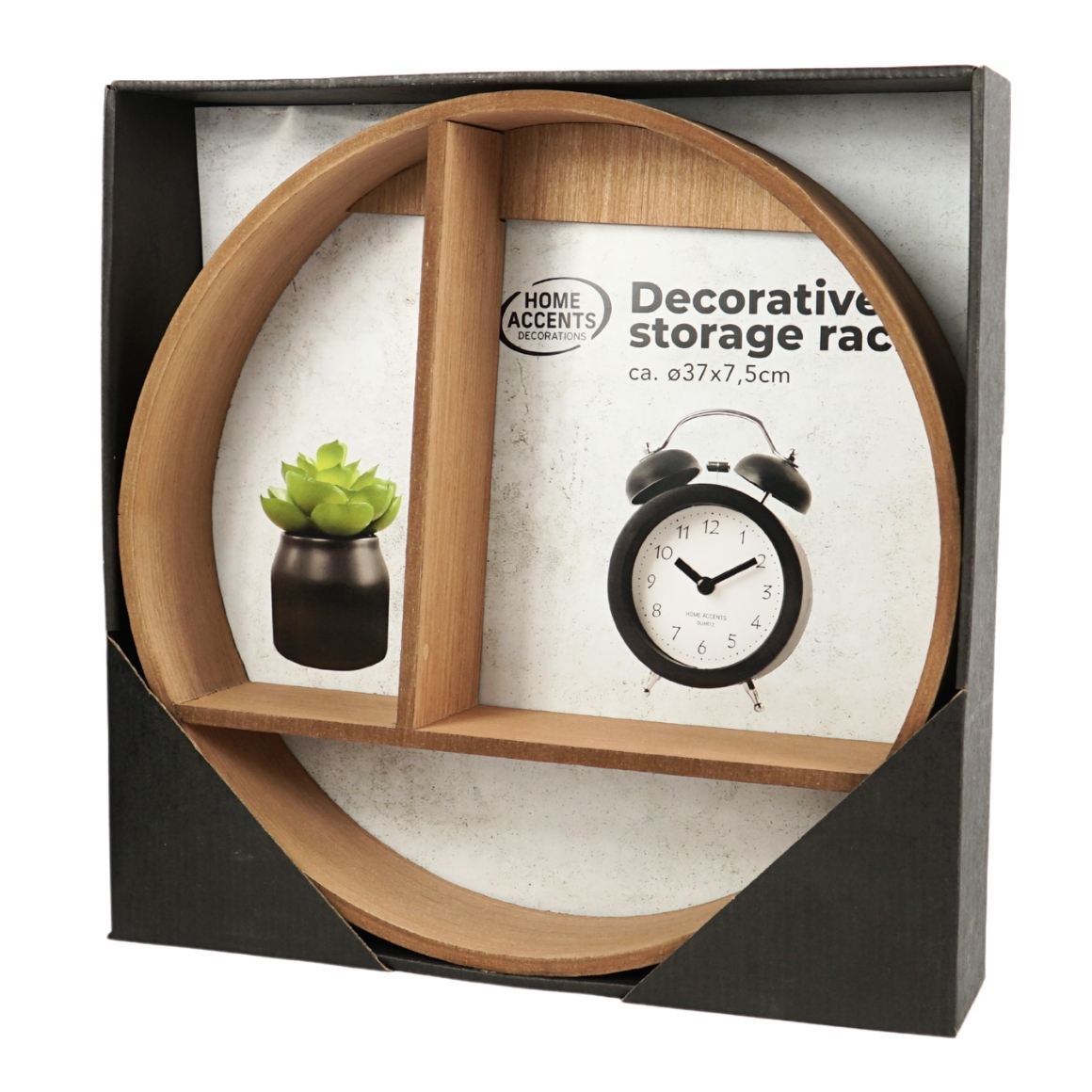 Artikel wordt assorti geleverd, de prijs is per stuk. Stijlvol wandrek in donkerbruin en lichtbruin, gemaakt van MDF. Wordt per 7 geleverd, met 4 lichte en 3 donkere rekken. Aan de achterzijde voorzien van twee ophangogen voor eenvoudige bevestiging aan de muur.