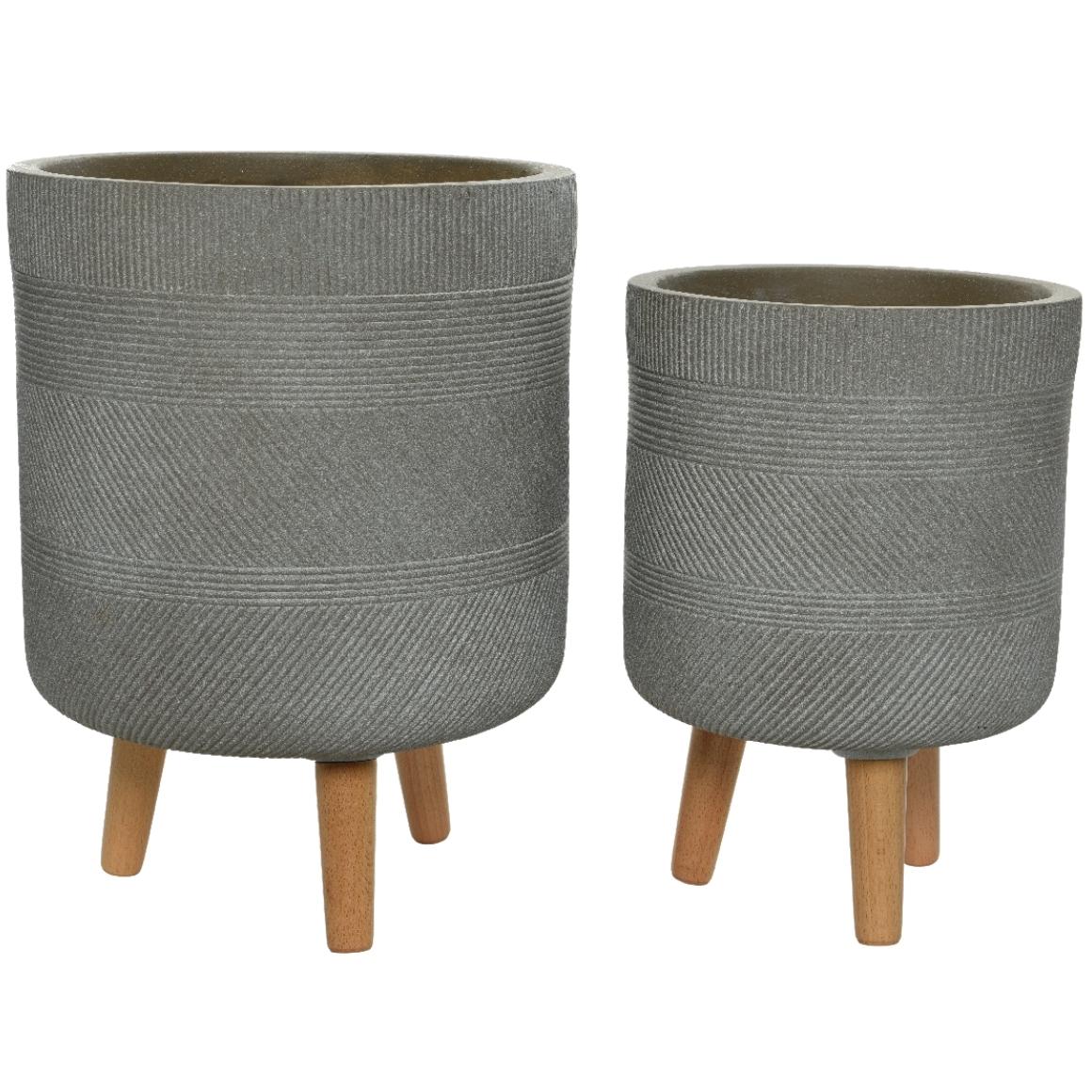 (R) Decoris bloempot op voet outdoor taupe 41 cm set van 2