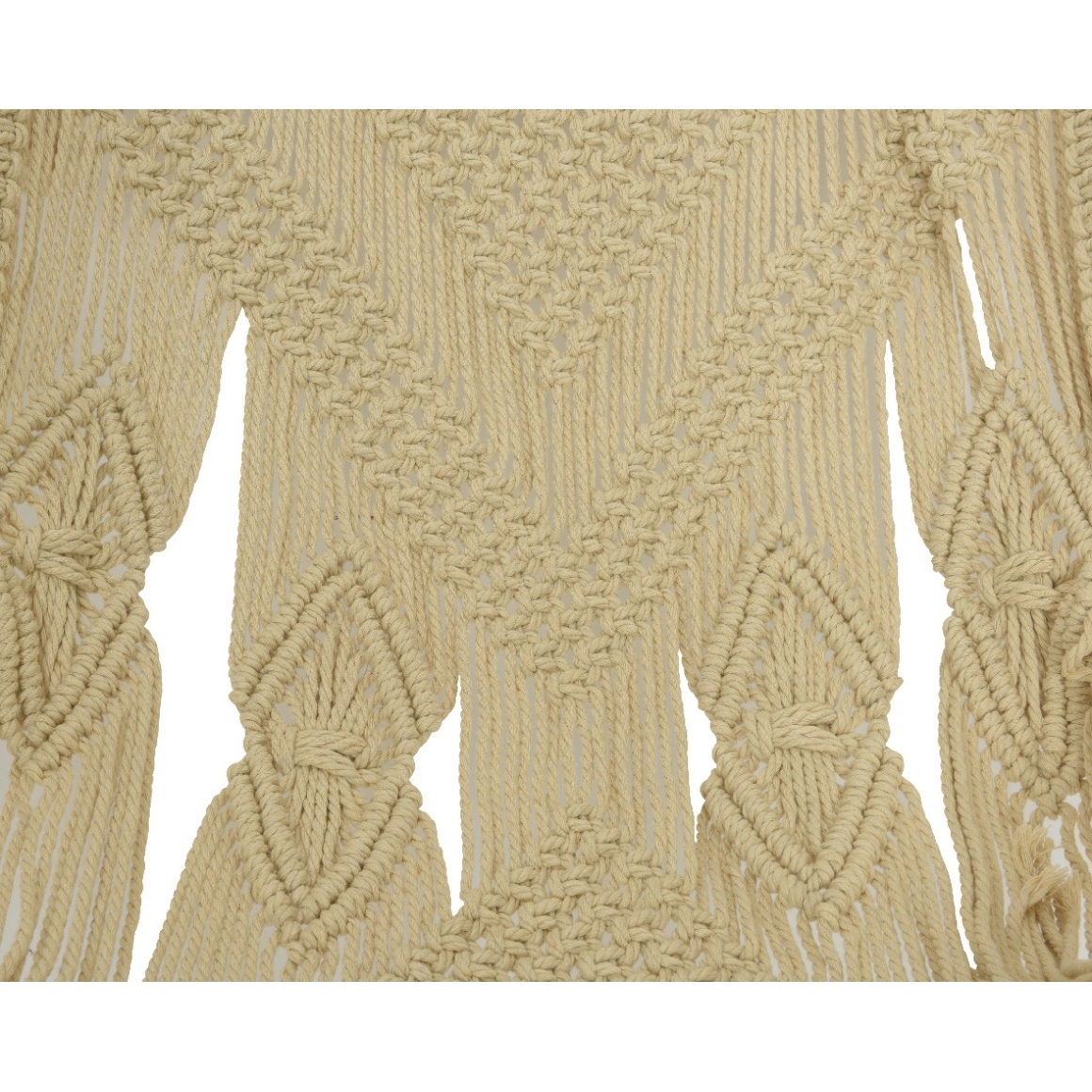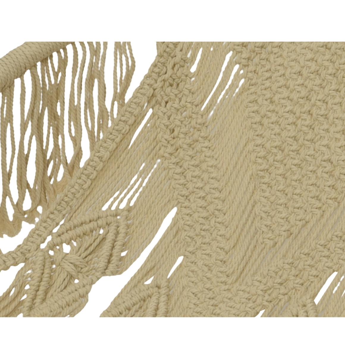 Geniet van ultiem comfort en stijl met deze hangstoel, speciaal ontworpen voor buitengebruik. De zitting is gemaakt van een duurzame en zachte mix van 65% polyester en 35% katoen, afgewerkt met decoratieve franjes voor een bohemien touch. Het stevige frame is gemaakt van gepoedercoat ijzer, wat zorgt voor extra stevigheid en weerbestendigheid. De hangstoel heeft een diameter van 80 cm en een hoogte van 130 cm en kan maximaal 100 kg dragen. Dankzij de UV-bestendigheid behoudt de stof haar kleur, zelfs bij langdurige blootstelling aan zonlicht. Bovendien is de stof wasbaar, wat het onderhoud eenvoudig maakt.